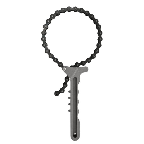 Con una cadena de alta resistencia que proporciona un agarre seguro al filtro de aceite durante su extracción.
